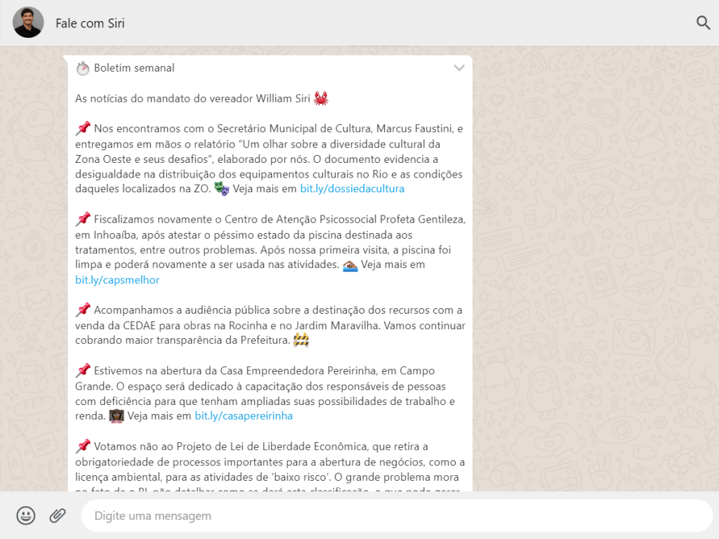 Além disso, temos o Papo com Siri que, desde 2016, discute política nos calçadões públicos.